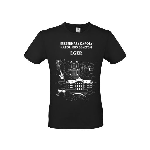 Férfi fekete póló egyedi egri grafikával